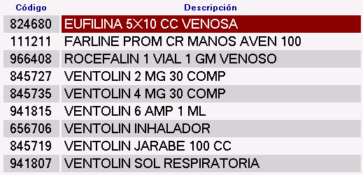 números y las letras legibles de la receta, el programa nos busca todos los artículos en cuyo nombre aparezcan lo