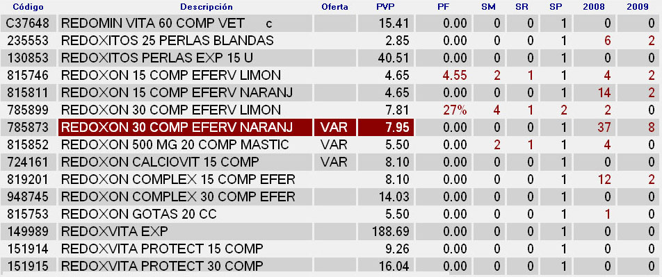 o en caso de que varios proveedores ofrezcan oferta en este artículo, aparecerán las siglas VAR.