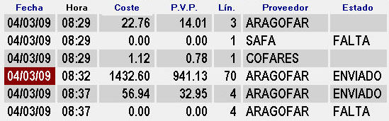 En este listado se registran todas las comunicaciones de envío de pedido con los distintos
