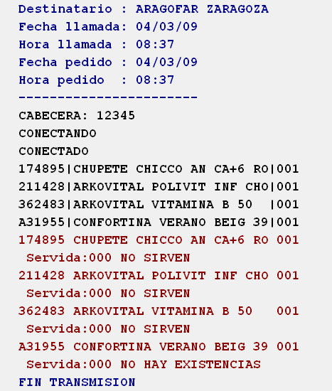 Cabecera: Contiene la hora, fecha, cabecera y el nombre del proveedor destino de pedido.