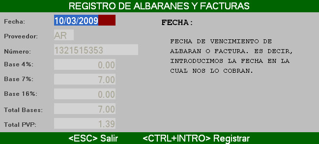 FECHA: Fecha del vencimiento de albarán o factura, es decir, en la fecha en