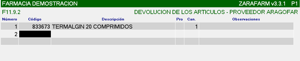 En esta pantalla introducimos los códigos a devolver y la cantidad, después