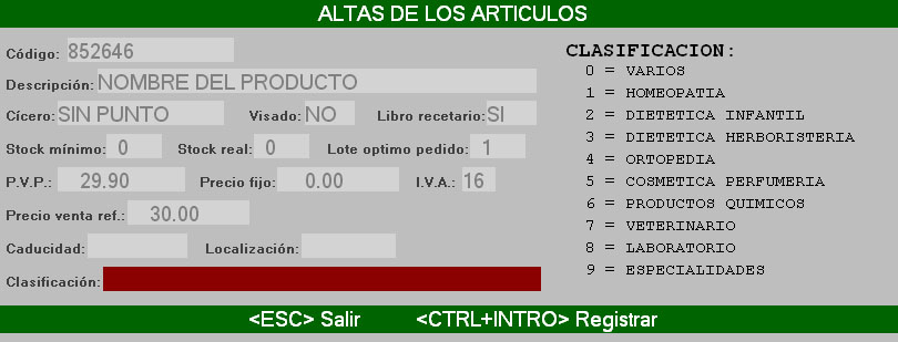 Para dar de alta un artículo nuevo tendremos que rellenar los campos necesarios